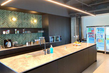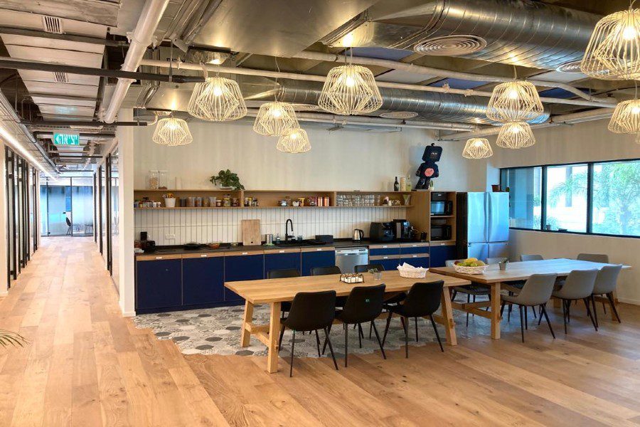 המשרדים משלבים חדרים והרבה אופן ספייס מטבח גדול